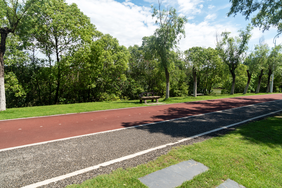 在城市运动公园走一走,散散步消消食,欣赏美丽的风景,天空蓝,树木绿