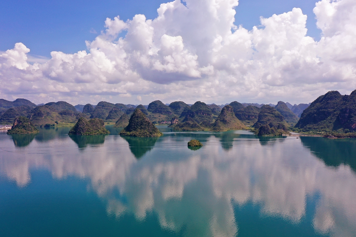 百色澄碧湖水库风光,秋季蓝天碧水美不胜收!