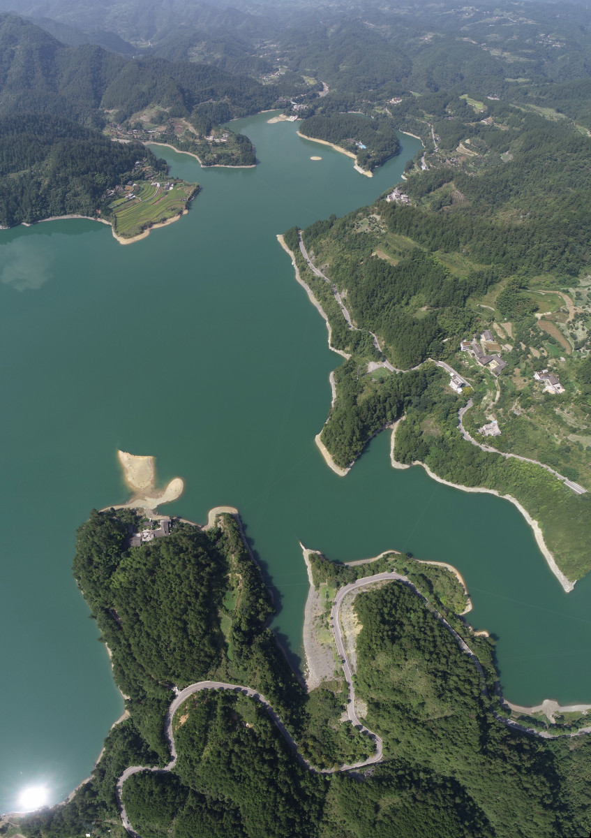 航拍视角下的清水湖,如同深山里的 蓝宝石 ,被誉为长江三峡黄金旅游线