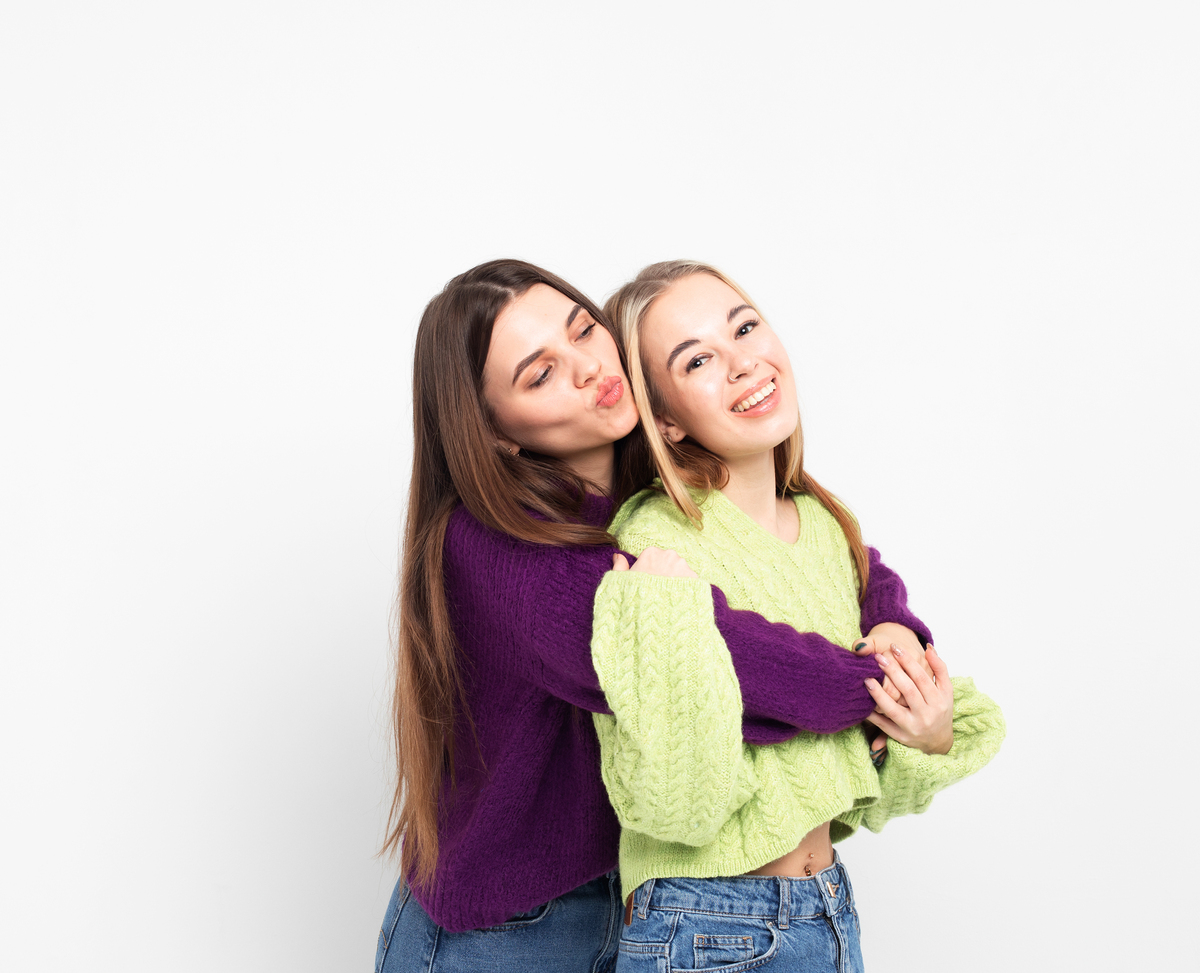 两位女子并肩立于古城之下,暖阳为她们勾勒出柔和轮廓.