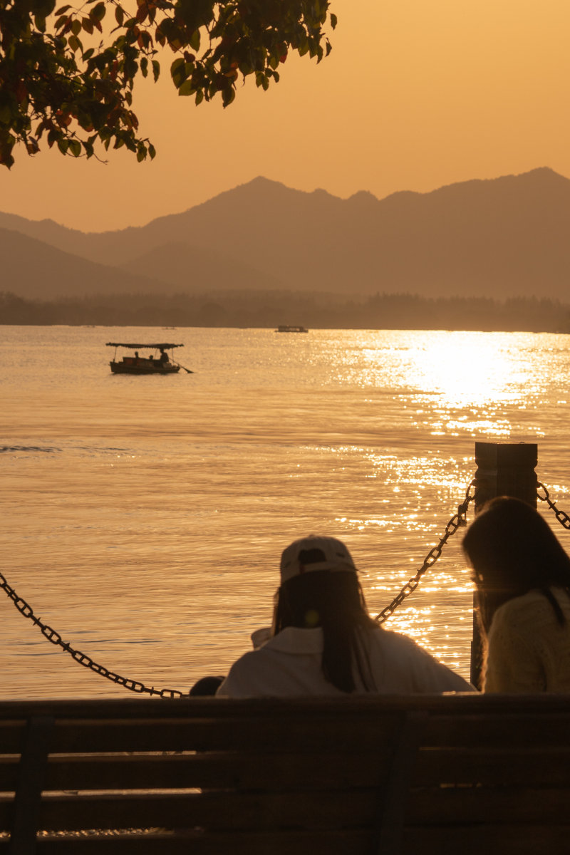 在西湖看最美夕阳